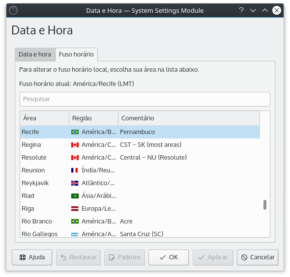 Você também pode ir até a aba Fuso horário para alterar o seu fuso horário local. Use a caixa de busca para encontrar a cidade mais próxima de você.
